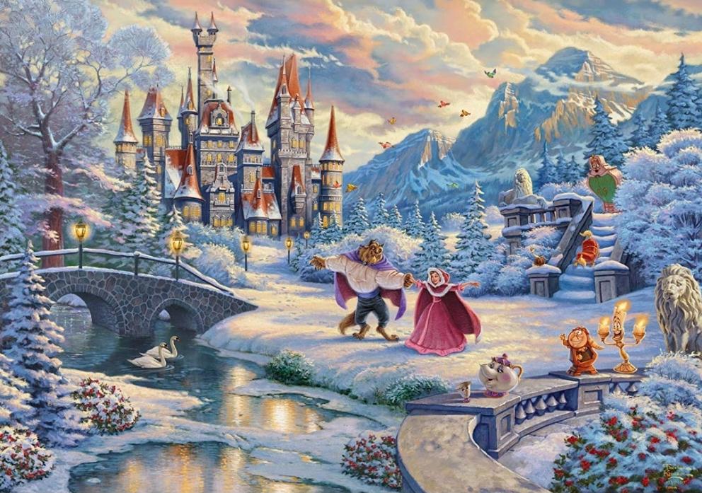 Puzzle Disney Schmidt 1000 pièces la Belle et la Bête dans un paysage enneigé par Thomas Kinkade