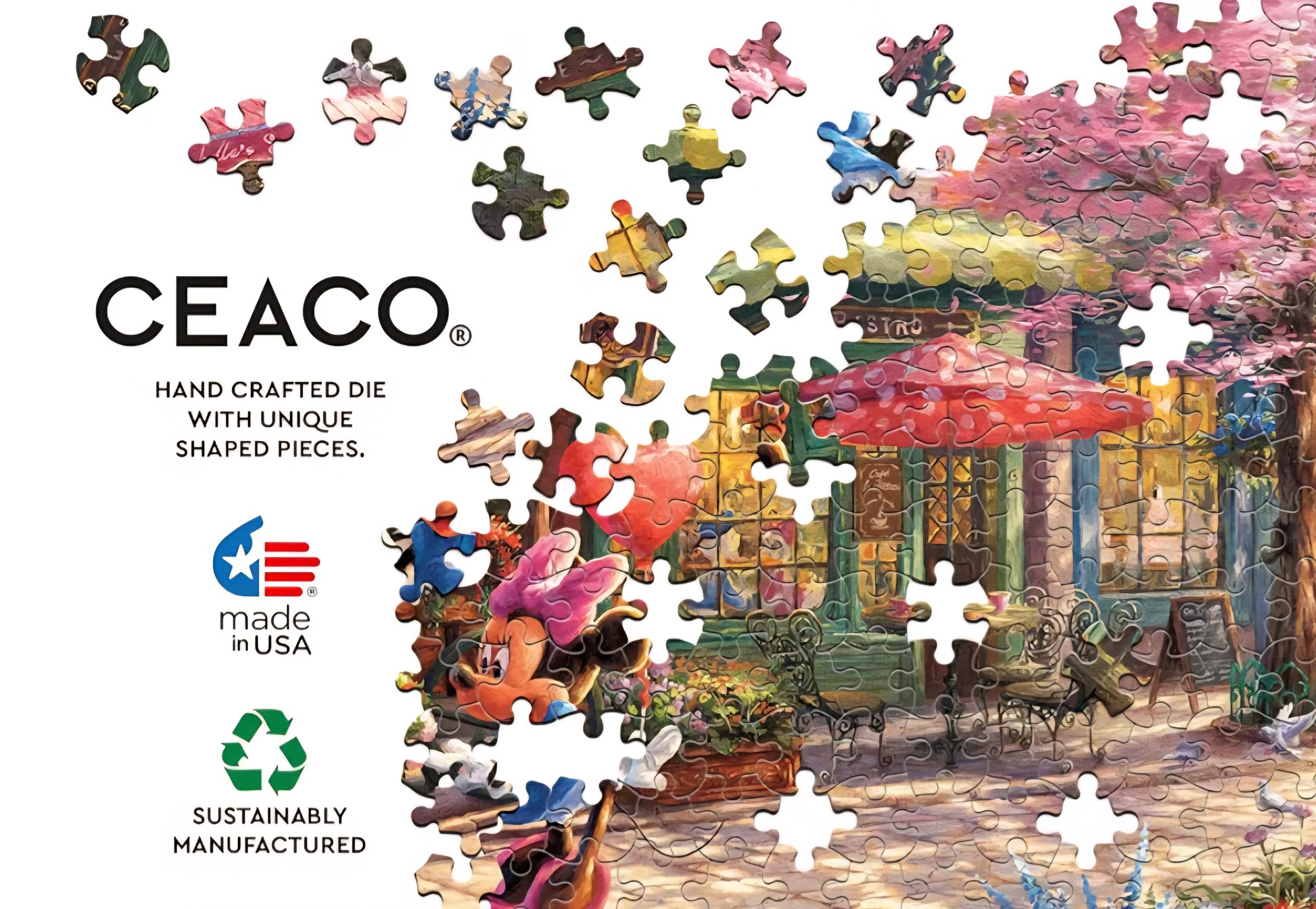 Découvrez ce puzzle Disney Ceaco 1000 pièces directement importé des États-Unis : Mickey et Minnie Sweetheart café